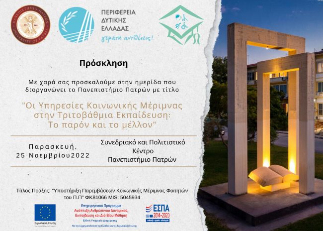 Ημερίδα: Οι Υπηρεσίες Κοινωνικής Μέριμνας στην Τριτοβάθμια Εκπαίδευση: Το παρόν και το μέλλον ΝέαBy Emmanouil Vasilakis24 Νοεμβρίου 2022