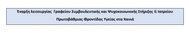 Έναρξη λειτουργίας γραφείου συμβουλευτικής και ιατρείου στα Χανιά ΝέαBy Emmanouil Vasilakis14 Φεβρουαρίου 2022